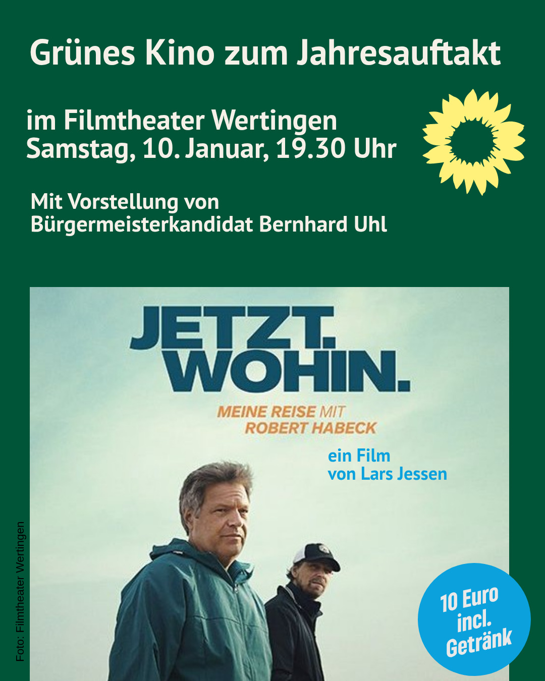 Mit frischer Energie starten die Grünen Wertingen ins Neue Jahr. Am Samstag, 10. Januar, wird das „Grüne Kino“ mit einem Jahresempfang eröffnet, bei dem Bürgermeisterkandidat Bernhard Uhl in Kontakt mit den Wertingerinnen und Wertingern kommen will. Der parteilose Kandidat, den die Grünen und die SPD unterstützen, gönnte sich nur eine kurze Weihnachtspause und ist bereits zwischen den Jahren wieder unterwegs von Haustür zu Haustür in der Stadt und den Stadtteilen. Wer Bernhard Uhl näher kennenlernen will, ist eingeladen, am 10. Januar um 19.30 Uhr ins Filmtheater zu kommen. Dort gibt es im Rahmen eines Empfangs Möglichkeiten zum Gespräch mit dem Kandidaten, der sich auf der Bühne im Filmtheater Wertingen öffentlich vorstellen wird.